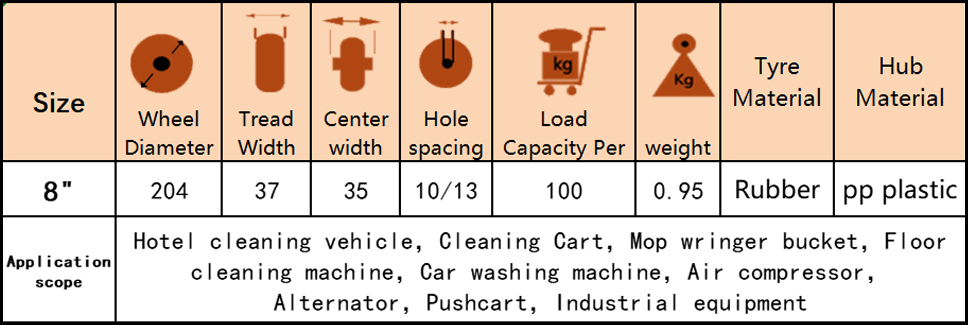 | Application scope | Hotel cleaning vehicle,Cleaning Cart,Mop wringer bucket,Floor cleaning machine,Car washing machine,Air compressor,Alternator,Pushcart,Industrial equipment |